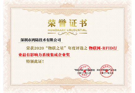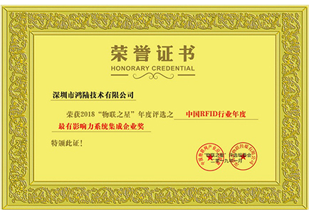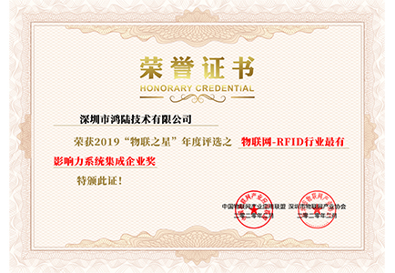 2017年“物聯(lián)之星”RFID行業(yè)內(nèi)最有影響力系統(tǒng)集成企業(yè)獎(jiǎng)