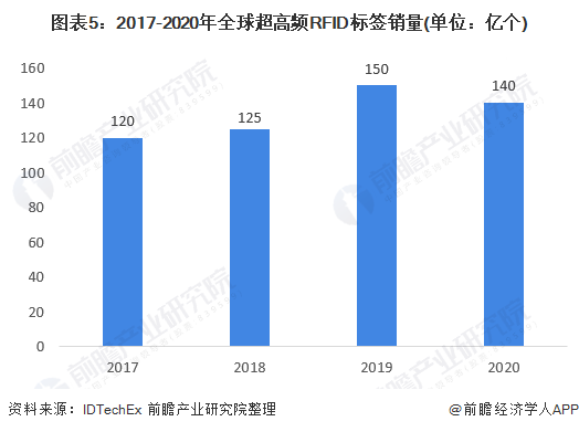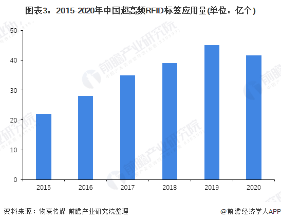 2020年超高頻RFID標(biāo)簽應(yīng)用量約為42億