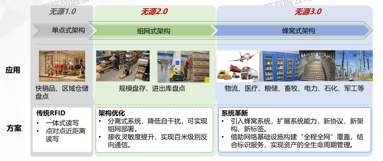 新型無(wú)源物聯(lián)演進(jìn)路徑:?jiǎn)吸c(diǎn)式無(wú)源1.0-組網(wǎng)式無(wú)源2.0-蜂窩式無(wú)源3.0