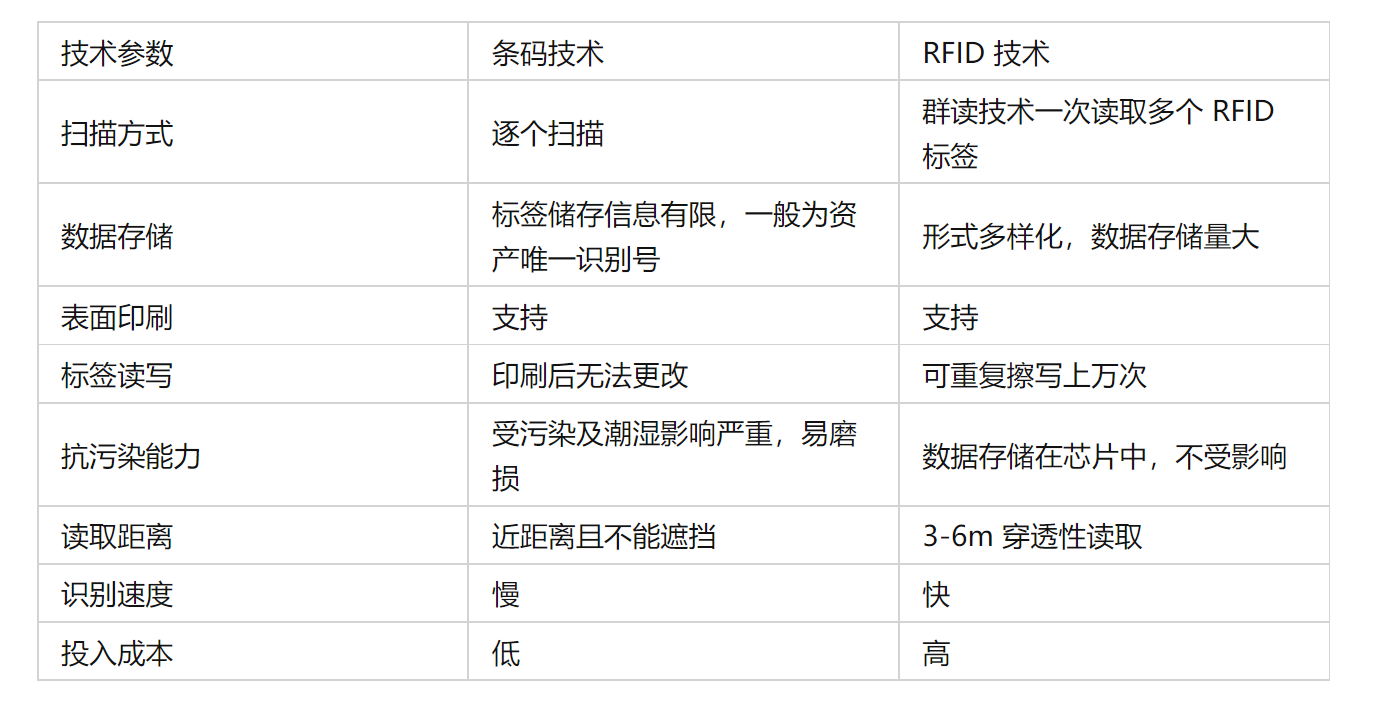 RFID技術(shù)促使固定資產(chǎn)管理得到大力提升,從設(shè)備購入時(shí)對(duì)資產(chǎn)進(jìn)行RFID電子標(biāo)簽身份綁定,RIFD電子標(biāo)簽內(nèi)寫入資產(chǎn)的條碼號(hào)、名稱、設(shè)備類型、使用部門、購入日期、價(jià)格等信息,進(jìn)行生命周期的管控。而條碼技術(shù)需要一對(duì)一逐個(gè)掃描,盤點(diǎn)效率低,且條碼易受污染。RFID 技術(shù)因其識(shí)別距離遠(yuǎn)、多標(biāo)簽識(shí)別能力強(qiáng)、采集快速、不易損壞等特點(diǎn)優(yōu)勢(shì),已經(jīng)在眾多行業(yè)的資產(chǎn)管理中普遍應(yīng)用。