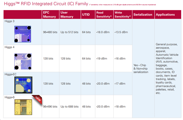 但隨著各種新應(yīng)用的出現(xiàn),新的領(lǐng)域?qū)?biāo)簽讀距要求越來越高等原因,漸漸地,H3的讀取靈敏度難以達(dá)到需求。Alien也更新升級了他們的芯片,就有了后來的H4(Higgs 4)、H5(Higgs EC )、H9(Higgs 9)。