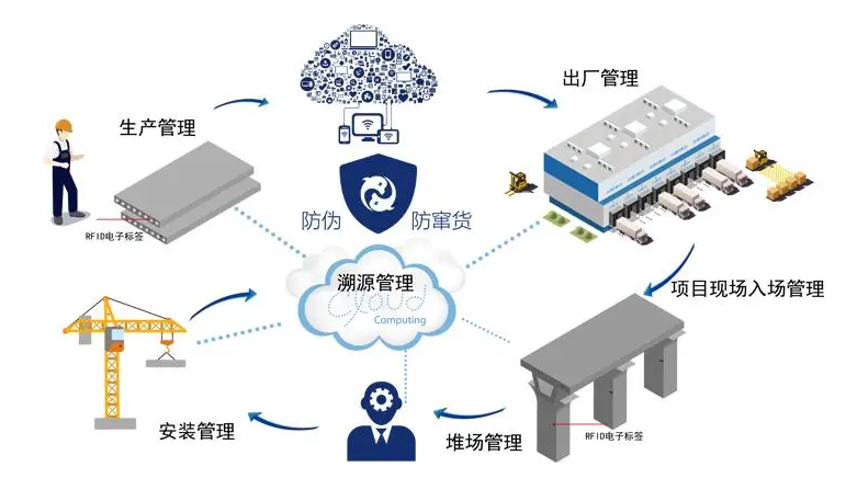 值得一提的是,RFID電子標(biāo)簽有著比身份證更強大的功能是,RFID芯片上的信息還包括該構(gòu)件即將運往哪個施工項目,且信息還將同步上傳至住建局的監(jiān)管系統(tǒng)中,從而滿足建筑產(chǎn)業(yè)現(xiàn)代化企業(yè)對混凝土預(yù)制構(gòu)件從生產(chǎn)、出廠、裝配、維護等全生命周期信息化管理的需求,助力監(jiān)管部門對預(yù)制構(gòu)件的智能化管理。對于預(yù)制混凝土構(gòu)件廠而言,RFID讀寫器可安裝在廠內(nèi)的任何位置,如出廠大門口、地磅處、倉庫管理辦公區(qū)外等,從而方便技術(shù)人員隨時了解產(chǎn)品的生產(chǎn)量、出貨量,及時而高效地進行供貨協(xié)調(diào)。此外,埋入構(gòu)件的芯片還具有高度穩(wěn)定性和安全性,工作溫度區(qū)間為-40℃至85℃,數(shù)據(jù)保存時間達50年,完全適應(yīng)混凝土預(yù)制件的戶外施工條件。