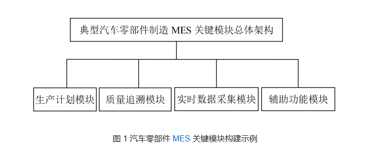 MES總體需求應(yīng)該包括提供精準(zhǔn)的實時數(shù)據(jù)流、優(yōu)化計劃編制以減少庫存、更科學(xué)地進行物料管理,實現(xiàn)通暢信息流、降低產(chǎn)品生產(chǎn)時間以提高現(xiàn)場過程效益及提升產(chǎn)品質(zhì)量等。而將RFID技術(shù)應(yīng)用于汽車零部件制造,融入到MES系統(tǒng)中,可提升生產(chǎn)過程的管理與控制水平,有效地跟蹤、管理和控制生產(chǎn)所需的物料、設(shè)備、人力等資源。與上層管理系統(tǒng)結(jié)合,可合理地調(diào)度、管理這些資源,提高制造競爭力,改善生產(chǎn)組織、縮短生產(chǎn)周期、減少在制品數(shù)量,提高產(chǎn)品的質(zhì)量和降低人力資源消耗。其關(guān)鍵模塊總體架構(gòu)如圖1所示。