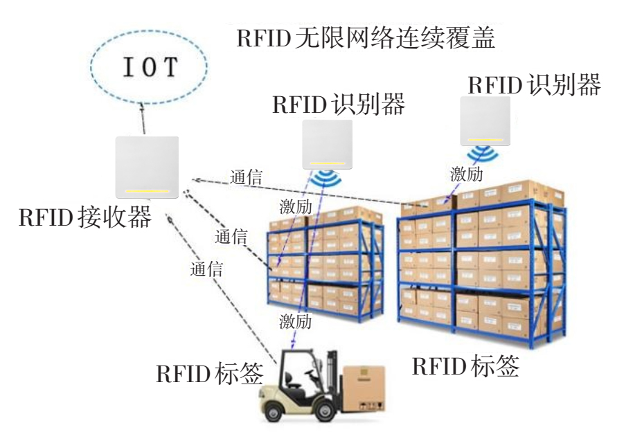 通過空間隔離消除了單個(gè)設(shè)備射頻干擾,通過頻分調(diào)度避免了設(shè)備間的干擾,實(shí)現(xiàn)了區(qū)域連續(xù)覆蓋,就可以使RFID設(shè)備自動(dòng)去感應(yīng)區(qū)域內(nèi)所有RFID標(biāo)簽。設(shè)備間的干擾問題解決了,RFID設(shè)備就可以組成網(wǎng)絡(luò),通過連續(xù)組網(wǎng),提供米級(jí)精確定位能力。