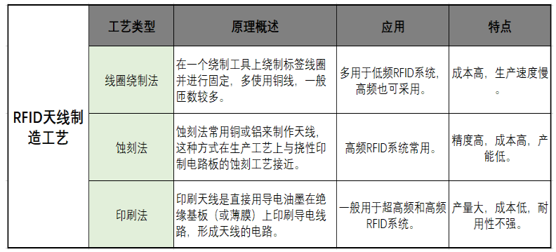 主要包括線圈繞制法、蝕刻法和印刷法,根據(jù)天線種類(lèi)的不同各有差異。