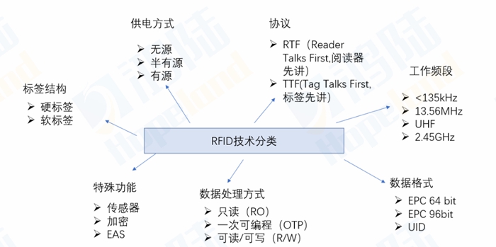 RFID技術(shù)是一項(xiàng)利用射頻信號通過空間耦合(電磁場或交變磁場)實(shí)現(xiàn)信息傳遞并通過所傳遞的信息達(dá)到識別目的的技術(shù)。RFID技術(shù)的發(fā)展,一方面是RFID成功應(yīng)用的極大促進(jìn)應(yīng)用需求的擴(kuò)展,一方面是受到應(yīng)用需求的驅(qū)動。根據(jù)工作頻率不同、協(xié)議不同、供電方式不同、功能不同、數(shù)據(jù)處理方式不同、數(shù)據(jù)格式不同,RFID可以分成各種各樣的種類。