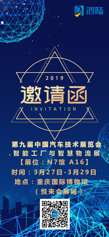 2019年蘇州國(guó)際博覽會(huì)的完美收官,將激勵(lì)我們?yōu)榭蛻籼峁└晟频姆?wù),踏實(shí)走好未來(lái)發(fā)展的每一步。3月27日-3月29日,鴻陸技術(shù)將在重慶國(guó)際博覽會(huì)舉辦的“第九屆中國(guó)汽車(chē)技術(shù)展覽會(huì).智慧工廠與智慧物流展”的展位號(hào)A16等著您的光臨?。?!
