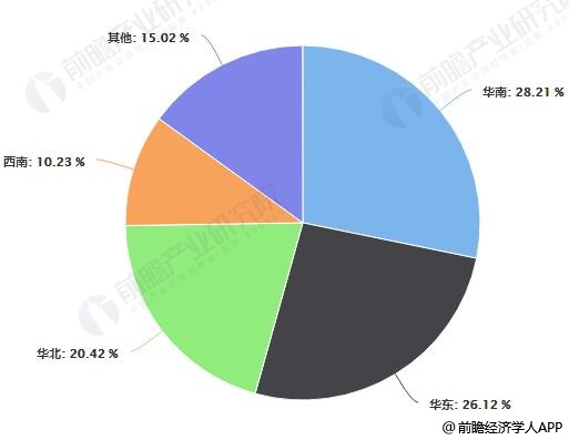 中國(guó)RFID區(qū)域市場(chǎng)結(jié)構(gòu)占比統(tǒng)計(jì)情況