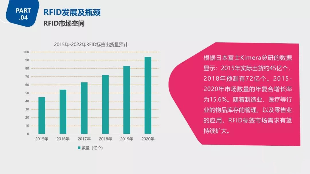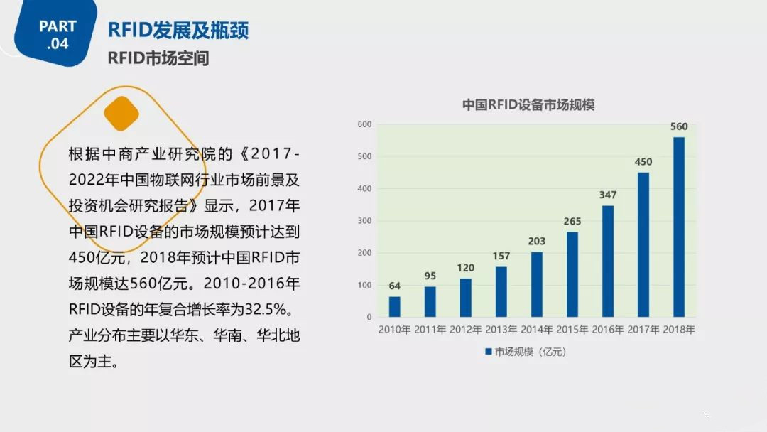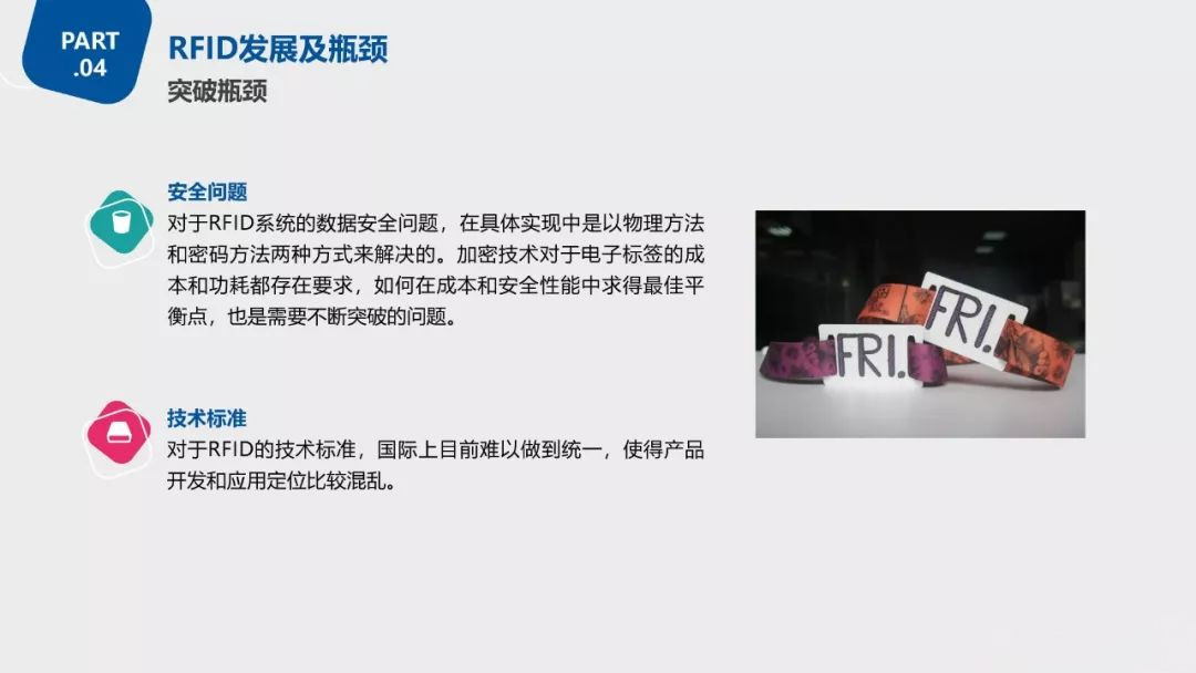 眾所周知,RFID系統(tǒng)中包括RFID電子標(biāo)簽、RFID讀寫器、RFID天線及RFID中間件,項(xiàng)目有要想成功落地,必須要根據(jù)具體場(chǎng)景拿出一整套R(shí)FID解決方案,這就涉及更多復(fù)雜的設(shè)計(jì)和協(xié)調(diào)、整合等問題,而非技術(shù)本身成熟就都能一一實(shí)現(xiàn)。所以,RFID技術(shù)還是有技術(shù)門檻滴!