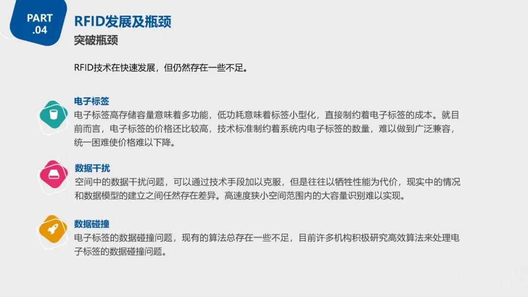如上圖所示,RFID技術(shù)的發(fā)展仍面臨著諸多挑戰(zhàn)。而且,是否有技術(shù)門檻不是簡(jiǎn)單的取決于技術(shù)本身,更多是看這一技術(shù)落地于具體應(yīng)用中的實(shí)用性及便捷性。