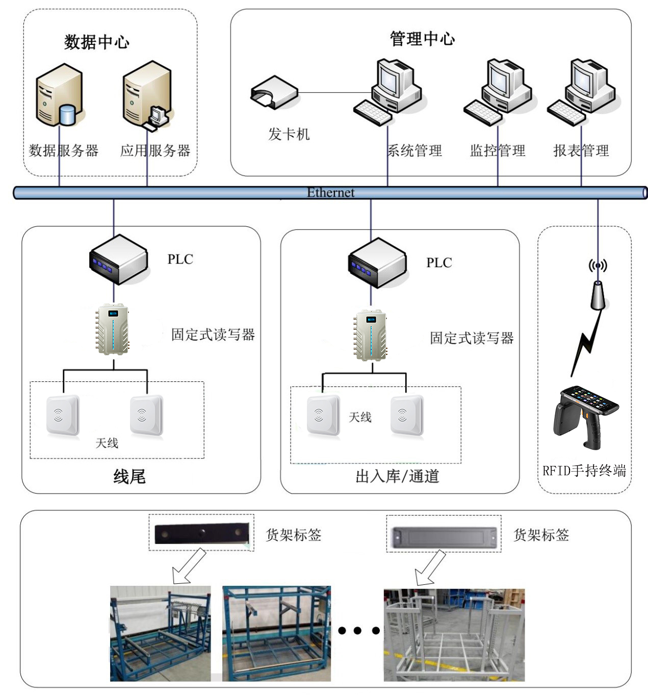 在沖壓車間柔性化生產(chǎn)需求的前提下,面對不同的車型、不同的沖壓零部件,流轉(zhuǎn)用的料架是不一樣的,沖壓車間RFID物流跟蹤系統(tǒng)解決了沖壓車間料架種類繁多、結(jié)構(gòu)各異的難題,實(shí)現(xiàn)了貨架標(biāo)簽安裝標(biāo)準(zhǔn)化、采集設(shè)備部署標(biāo)準(zhǔn)化以及作業(yè)流程標(biāo)準(zhǔn)化的管理目標(biāo),在不改變原有作業(yè)流程的基礎(chǔ)上,實(shí)現(xiàn)了RFID技術(shù)的無縫對接。