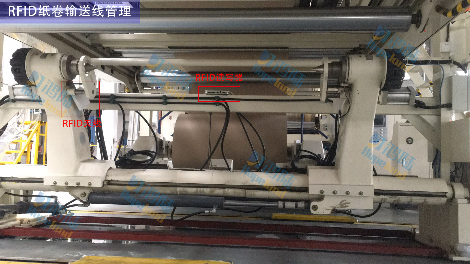 3、當(dāng)紙卷到達(dá)對應(yīng)紙架時,紙架上的鴻陸RFID讀寫器,可自動讀取紙卷的相關(guān)信息,并全程監(jiān)控記錄紙卷的使用情況;