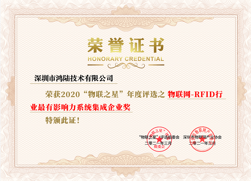 中國(guó)RFID行業(yè)年度最有影響力系統(tǒng)集成企業(yè):深圳市鴻陸技術(shù)有限公司