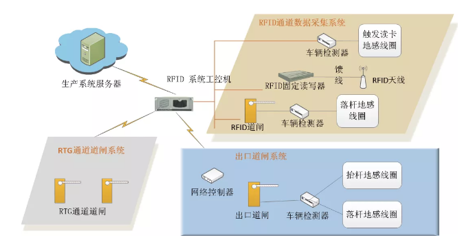 碼頭自動(dòng)化RTG 堆場(chǎng)RFID系統(tǒng)由RFID數(shù)據(jù)采集系統(tǒng)、RTG通道道閘系統(tǒng)、出口道閘系統(tǒng)三部分組成。