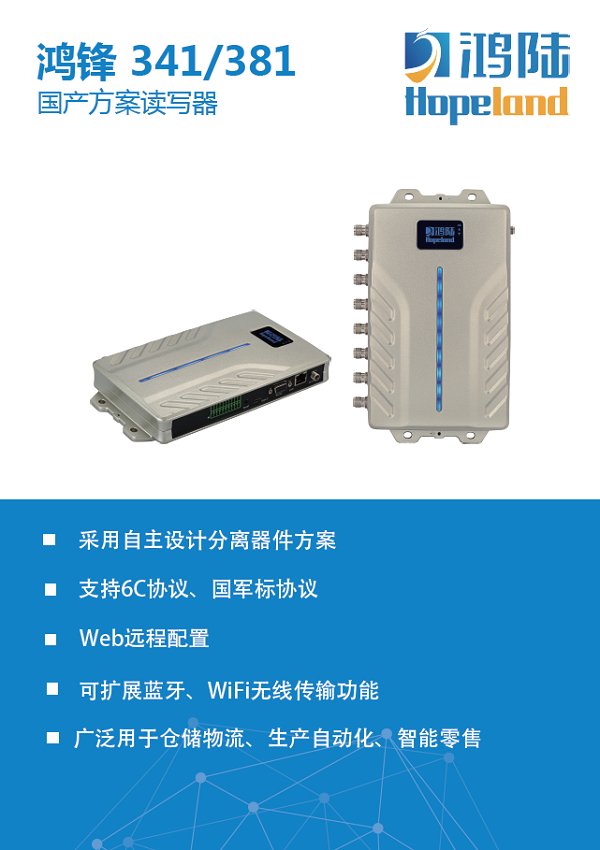 鴻陸最新研發(fā)的國產(chǎn)方案讀寫器 鴻鋒341/381采用自主設(shè)計(jì)的分離器件方案;可同時(shí)支持6C協(xié)議、國軍標(biāo)協(xié)議;自主知識(shí)產(chǎn)權(quán)可控,不受RFID芯片短缺的限制;可以做到收、發(fā)的信號(hào)分離,提高讀寫的靈敏度。