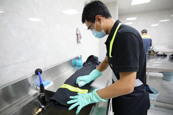 據(jù)了解,清洗中心設(shè)立有分揀區(qū)、頭盔鞋靴防化服清洗區(qū)、常規(guī)衣物洗滌區(qū)、消防服洗滌區(qū)、烘干區(qū)、縫補(bǔ)整燙區(qū)和成品儲存區(qū)七個功能區(qū)域。