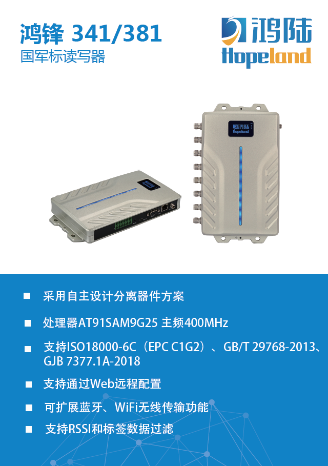鴻陸最新研發(fā)的鴻鋒341/381采用自主設(shè)計(jì)的分離器件方案;可同時(shí)支持6C協(xié)議、國(guó)軍標(biāo)協(xié)議;自主知識(shí)產(chǎn)權(quán)可控,不受RFID 芯片短缺的限制;可以做到收、發(fā)的信號(hào)分離,提高讀寫(xiě)的靈敏度。